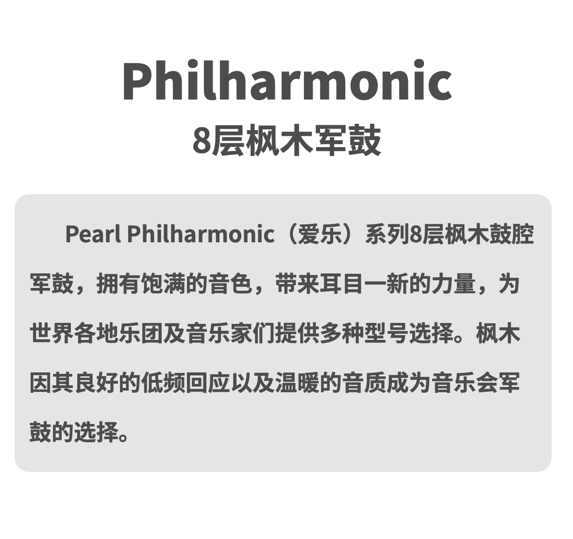 Pearl Philharmonic(爱乐)系列8层枫木军鼓