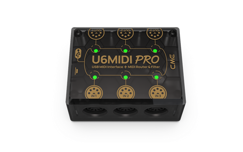 U6MIDI Pro 是一台专业的 USB MIDI 接口和可以独立使用的MIDI 路由器,可为任何配备 USB 的 Mac 或 Windows 电脑提供非常紧凑的、即插即用的 MIDI 连接,同时也可通过苹果USB 连接套件或安卓 OTG 转接线与 iOS 和安卓平板电脑或手机一起使用。它具有 3 个 MIDI IN 和 3 个 MIDI OUT 的标准五芯 MIDI 端口,支持 48 个 MIDI 通道,并使用标准 USB 总线或 USB 电源供电。
