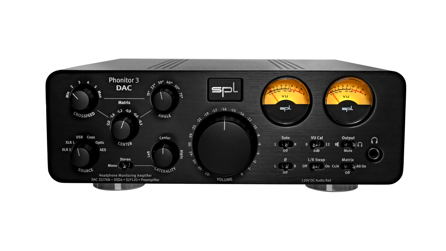 Phonitor 3 DAC提供了与大型SPL DMC和MMC母带调音台相同的关键技术--SPL 120V技术--和信号质量。