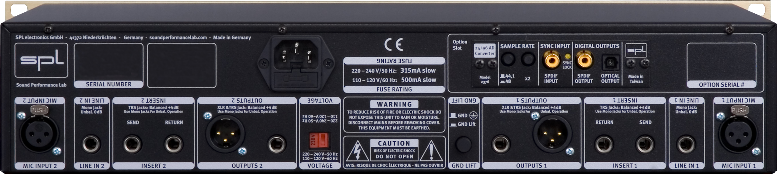 频率响应(Tube Gain +18 dB, 600 Ω, -3 dB): 10 Hz – 35 kHz